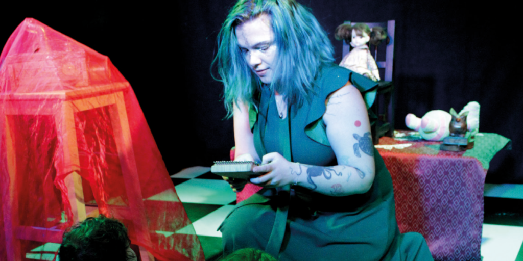 Ada la magicienne vous livre, avec son théâtre d’images et d’objets, ses contes et histoires fantastiques. Elle nous raconte son enfance farfelue et féerique entre deux mamans peu ordinaires : Sorcière Cabalistouille et Fée Lila. Voyageant entre les quatre éléments, les émotions, les couleurs,